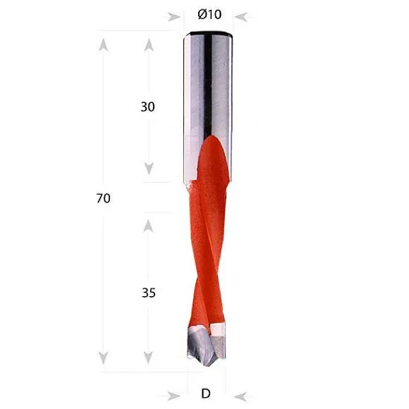 • Tělo vrtáku z vysoce kvalitní tvrzené oceli. • HM hlava s přesně vycentrovaným středicím hrotem. • 2 precizně broušené HM břity (Z2). • 2 HM zuby s předřezy a radiálním podbroušením (V2). • 2 spiralové drážky. • Válcová upínací stopka s unášecí plochou a šroubem pro nastavení délky. • Baleno v plastové krabičce po 1 kuse. • Ekonomické balení po 5 kusech. • Vrtací hlava pro vrtání čistých neprůchozích otvorů s plochým dnem. • Přesně broušená stopka pro přesné upnutí ve stroji. • Průmyslová kvalita jemnozrného tvrdokovu na tvrdé materiály. • Radiusové podbroušení pro vysokou produktivitu. • Teflonový povrch pro lepší odvod třísek.Celotvrdokovový hrot. Použití: na vrtacích strojích, CNC strojích a kolíkovačkách, pro vrtání neprůchozích otvorů s možností výších otáček a posuvových rychlostí.Masivní dřevo, DTD, MDF, LTD a plasty.