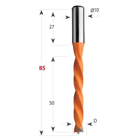 Použití: na vrtacích strojích a kolíkovačkách pro vrtání neprůchozích otvorů do DTD, MDF, lamina a plastů.