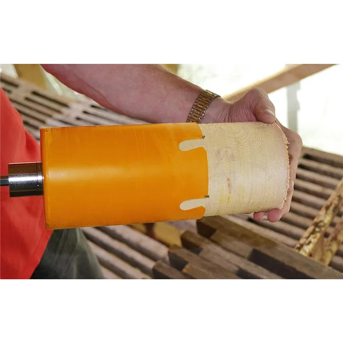 Inovativní design otvoru v korunce umožňuje jednoduché vyjmutí odvrtaného materiálu.