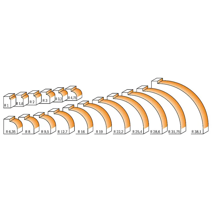 • Tělo nástroje z prvotřídní oceli. • HM tvrdokovové břity. • Teflonový nepřilnavý potah. • 15 velikostí poloměrů. • Kopírovací ložiska.