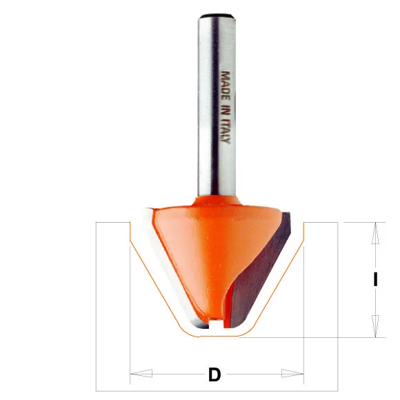 • Ideální fréza pro frézovaní znaků.• Sklon profilu 60°.• Poloměr špičky nástroje R=3,2 mm.• Plochý spodekPoužití: Pro lehké a přesné frézovaní reliéfních nápisů. Tento speciální profil umožňuje účinně zúžit plochu základu písmena a skosithrany, aby se eliminovalo nepříjemné otřepení.