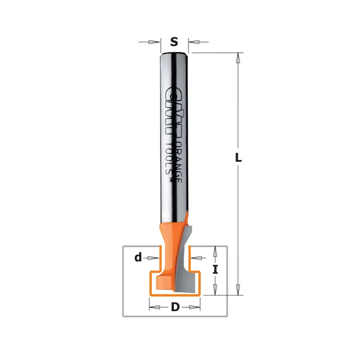 S frézou CMT na cylindrické drážky můžete frézovat otvory pro zavěšení obrobků na háčky a hlavičky šroubů M5, M6 nebo M8 nebo frézovat drážky pro závěsné stěny, drážkové panely Slatwall.