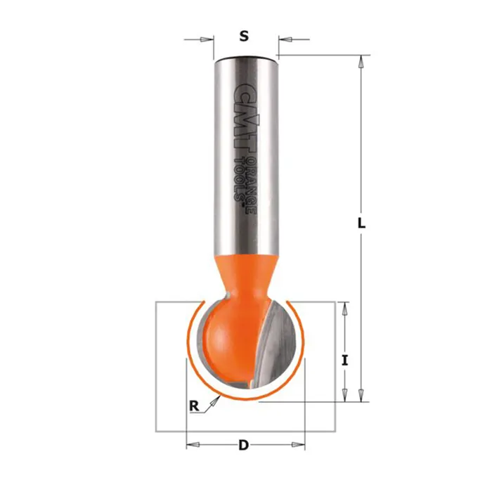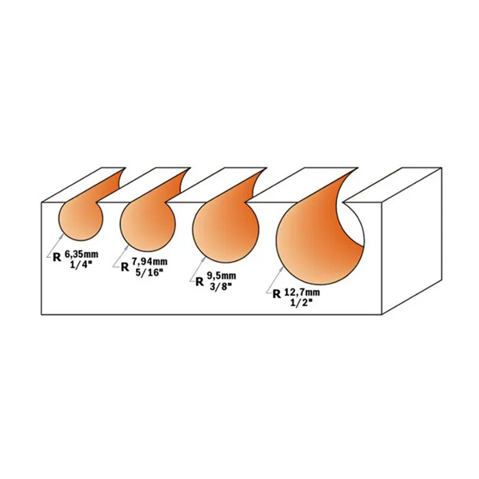 Pomocí kulové frézy CMT můžete snadno frézovat drážky pro závěsné kování kruhového průřezu nebo kabely. Doporučujeme nejprve předfrézovat drážkovací frézou nebo frézovat na více průchodů.