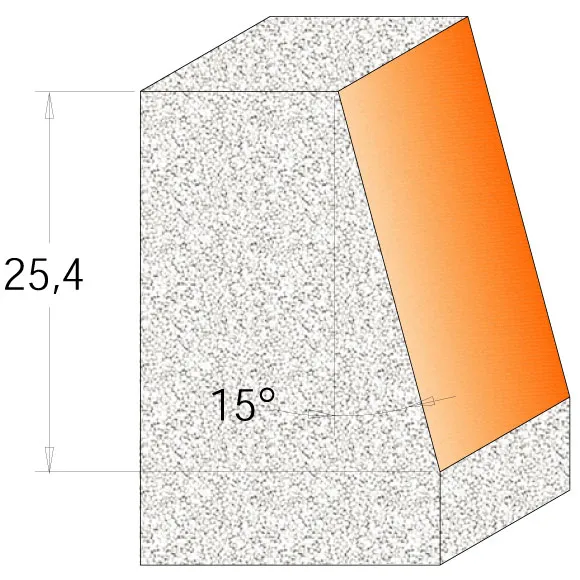 Tato úhlová fréza má břit pod úhlem 15° a je určena na opracování hran desek z CORIANU. Určená pro ruční horní frézky.