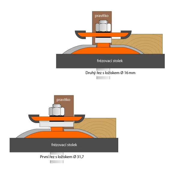 Dodávána se dvěma ložisky, které Vám vymezí hloubku úběru při použití 2 průchodů při frézování profilu.