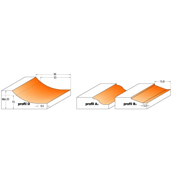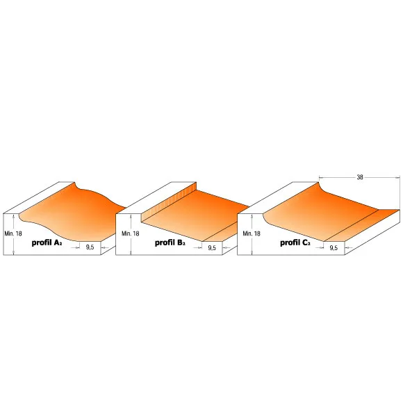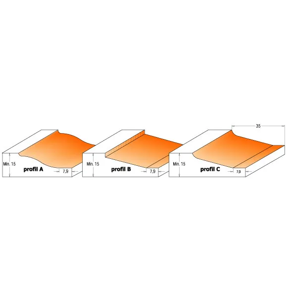 POZOR: Frézy používejte při nižších otáčkách mezi 10000 a 12000 ot./min. Pro bezpežné a přesné dosažení požadovaného profilu doporučujeme tři až pět průchodů. Výkon frézky musí být nejméně 1500W.Použití: Pro výrobu výplní dvířek, dveří a zásuvkových čel. Nutno použít frézovací stolek. Doporučujeme náš frézovací stolek, který byl testován pro toto použití.