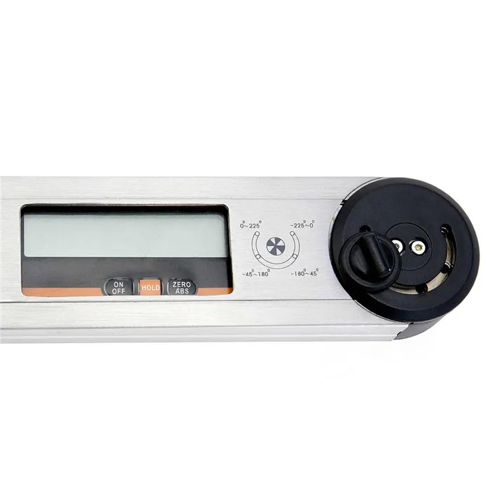 Tento digitální úhelník s ramenem je měřicí nástroj s mnoha funkcemi. Velmi snadno můžete změřit úhel a pomocí pravítka o délce 270 mm nakreslit čáru řeznou. Čitelný velký displej vám ukáže přesný úhel v rozsahu 0–225° s rozlišením 0,05°. Úhelník slouží také jako vodováha a obsahuje jednu libelu.Vlastnosti:• Analogový ukazatel kvadrantu úhlu• 4 nastavitelné díry pro fixaci úhelníku ve specifických úhlech• klovové pravítko• hliníková základna• LCD displej• blokovací ovládací šroubSpecifikace:• Baterie: 3V / L lithiová 2000h• Rozlišení: 0,05°