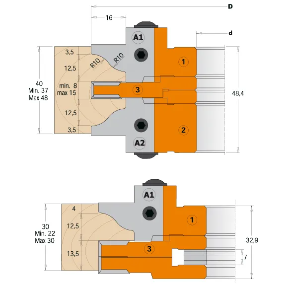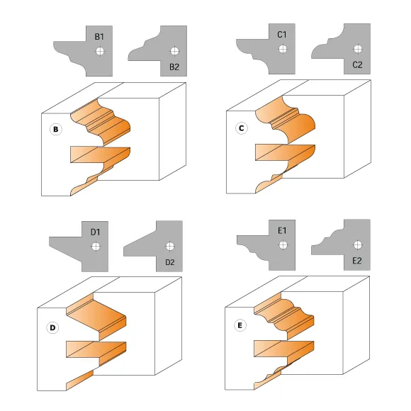 Tento nástroj je určen k výrobě interiérových dveří z měkkého a tvrdého dřeva. Frézovací hlava je velice všestranná, neboť do ní lze upnout pět různých profilových žiletek, s nimiž vyrobíte nejžádanější profily. Stavitelnou drážkovací frézu, která je také součástí sestavy, lze použít samostatně k frézování drážek o tloušťce 8 až 15 mm. S touto jedinečnou CMT frézou vyrobíte profil rámu pro výplně i pro sklo. Určeno k použití se spodní frézkou. Výborně se hodí pro tvrdé a měkké dřevo o maximální tloušťce 48 mm.Dodáváme v pevném plastovém kufru!Parametry: Zuby 2+2, pro D132mm otáčky 5700–9500 ot./min., pro D147mm otáčky 5100–8500 ot./min., ruční posuv materiálu MAN.
