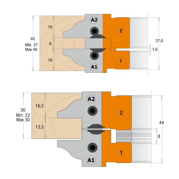 • Robustní tělo z hliníkové slitiny.• Extra pevné ocelové tělo drážkovací stavitelné frézy typ (3).• 2 HM žiletky typu (A1) 25x29,8x2mm [Z2].• 2 HM žiletky typu (A2) 25x29,8x2mm [Z2].• 2 HM žiletky 7,65x12x1,5mm [Z2].• 4 HM žiletky 14x14x1,2mm [V4].• 12 distančních kroužků 0,1 až 3mm pro frézu typu 1 & 2.• 12 distančních kroužků 0,1 až 2mm pro drážkovací frézu typu 3.• Určeno pro ruční posuv MAN.• Kolíky pro automatické vycentrování žiletek.