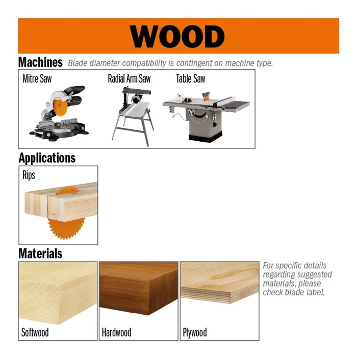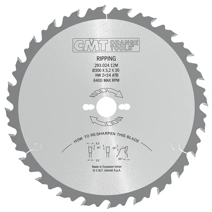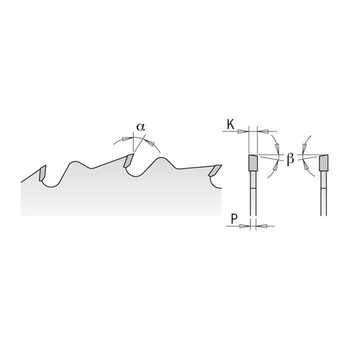 • Pro podélné řezy dřeva.• Lakovaný povrch kotouče.• Tvrdokovové zuby HW s omezovačem třísky.Pilový kotouč se střídavě šikmými tvrdokovými zuby HW pro podélné řezy tvrdého a měkkého dřeva. Povrch kotouče je lakovaný pro zvýšenou odolnost proti korozi. Zub s omezovačem třísky zabraňuje zpětnému rázu. Expanzní drážky zaručují rovný řez. Určeno pro stroje s ručním i strojním posuvem.• Použití: Podélné řezy.• Stroje: Podle průměru pro radiální, formátovací, pokosové a stolní pily.• Materiál: Měkké a tvrdé dřevo.