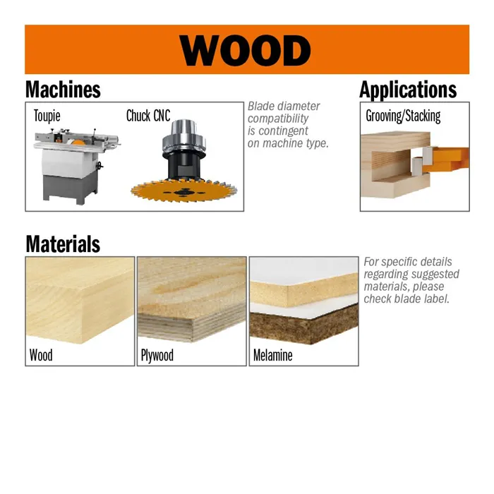 CMT drážkovací pilové kotouče mají zesílená těla pro perfektní řez drážky v měkkém a tvrdém dřevě, MDF a dřevotřísce. Jsou vyrobeny nejmodernějšími výrobními procesy, které zaručují vyváženost kotouče, přesnost naostření a dlouhou životnost ostří. Jsou vyráběny z kvalitních celosvětově ověřených materiálů a průběžně kontrolovány ve výrobním procesu.• Použití: Vhodné na drážkování.• Stroje: CNC a čepovací stroje.• Materiál: Měkké a tvrdé dřevo, desky na bázi dřeva.