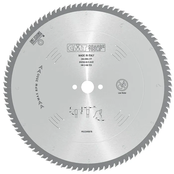 Pilový kotouč s pozitivním úhlem čela. Konstruován pro vysoký výkon, kvalitní řez a dlouhou životnost ostří. CMT kotouč pro neželezné kovy a plasty je ideální pro profesionální stroje s dobře upevněným řezaným materiálem. Použití pro řezání hliníkových výlisků a profilů a tabulí z plastů a pryskyřic (Pertinax). POZOR: Doporučujeme používat mazání emulzemi.• Použití: Vysoký výkon s dlouhou životností.• Stroje: Stolní a pokosové pily s upevněným materiálem na pracovním stole.• Materiál: Hliník, mosaz, slitiny mědi, plast, kompozitní materiály.