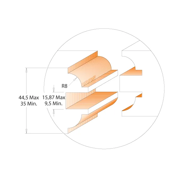 S týmito CMT frézami vytvoríte ľahko elegantný čapový spoj rámov na profil a kontraprofil pre vstupné a interiérové dvere. Môžete dokúpiť samostatne ešte frézy na dlhé čapy C90062811. Určené len pre použitie vo frézovacom stolíku. Nie je určené pre ručné frézovanie.