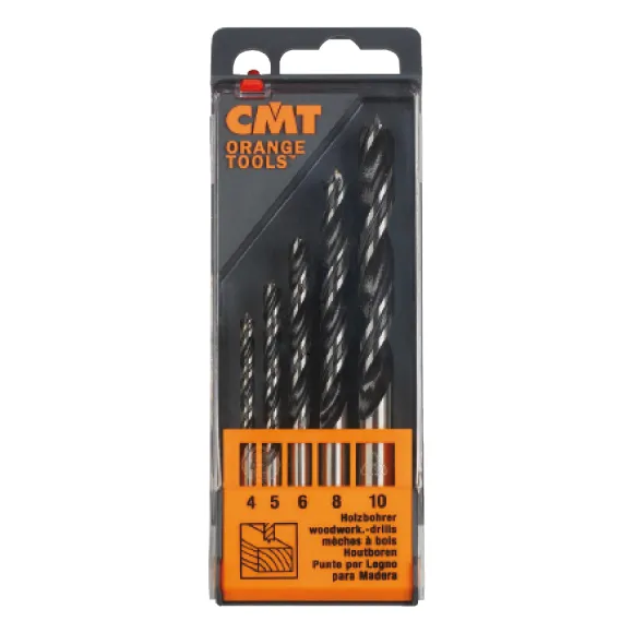 Sada CMT C517 Vrtáků do dřeva pro běžné vrtací práce.5-dílná sada SP vrtáků (D 4-5-6-8-10 mm).