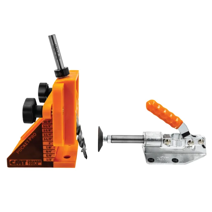 • CMT vrtací přípravek Pocket-Pro je určen pro rychlé, jednoduché a přesné spojování nábytku, korpusů a rámů.• Umožňuje tvořit pevné, slepé spoje v deskách o tloušťce 12,7 – 40 mm, to vše s neuvěřitelnou rychlostí a přesností. Hlavní výhodou vrtacího přípravku Pocket-Pro je unikátně lisované tělo s tvrzenými vrtacími pouzdry a dvoudílná zámková konstrukce. Posunem nahoru a dolů jednoduše nastavíte tloušťku vrtaného materiálu na stupnici po 1,6mm, aniž byste museli vyvrtávat testovací otvory nebo cokoliv měřit. Jestli již máte zkušenost s podobnými vrtacími přípravky, pak vám některé vlastnosti přijdou známé, Pocket-Pro ovšem nabízí mnohé další výhody.Například:• Některé přípravky vyžadují rozebrání, pokud chcete nastavit jinou tloušťku obrobku. Pocket-Pro ale stačí posunout nahoru nebo dolů po stupnici od 12,7mm až po 40mm a tak nastavit požadovanou tloušťku spojovaného materiálu.• Jiné přípravky vyžadují neustálé upravování hloubkového dorazu pro různé druhy spojů. Pocket-Pro od CMT umožňuje provádět různé změny, zatímco zanechá doraz v té samé pozici vrtáku.• Navíc, s Pocket-Pro systémem od CMT můžete rychle upravit umístění otvoru pro vrut vůči tloušťce obrobku a tím vytvořit silnější spoj za pomoci delších šroubů, nebo také nechat více materiálu ve spoji.• Podívejte se na Pocket-Pro systém ještě dnes. Nabízí jednoduchost pro začátečníky a přesnost pro profesionály, Pocket-Pro je světově nejuniverzálnější přípravek pro tvorbu slepých spojů.Součást balení:• Vrtací přípravek• Vrták D9,5 d3,8 S=9,5 mm• Hloubkový doraz D9,5 mm• Bit čtyřhranný 152 mm• Sada šroubů 30ks - L31,7 mm