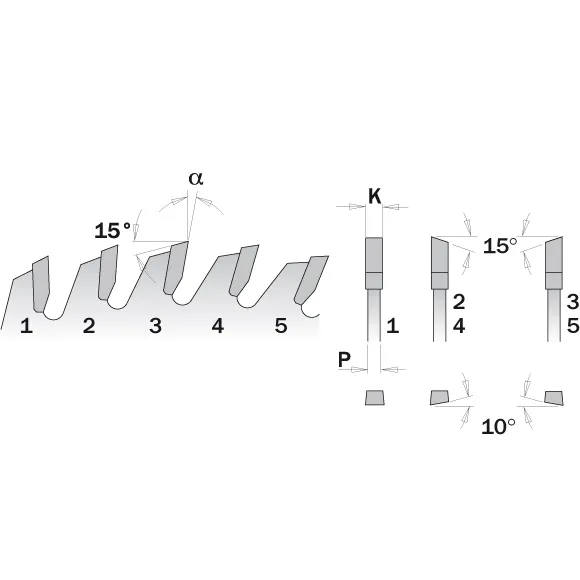 Pilový kotouč pro vysoce kvalitní dělení měkkého, tvrdého a exotického dřeva, laminátu, překližky, PVC a neželezných kovů. Speciální geometrie zubů s vybroušeným sklonem. Tvrdost plátků KCR06, pevnost 2300 N/mm2 a boční házivost do 0,05 mm.• Použití: Vhodné na finální příčné řezy.• Stroje: Zkracovací, pokosové, formátovací a kotoučové pily.• Materiál: Měkké a tvrdé dřevo, dřevotříska, exotické dřevo, DTDL, překližka, PVC a neželezné kovy.