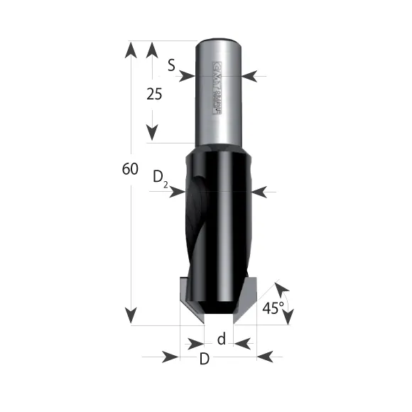CMT Záhlubník HW se stopkou - d=6 D16 a=45° S=10X25 levotočivý