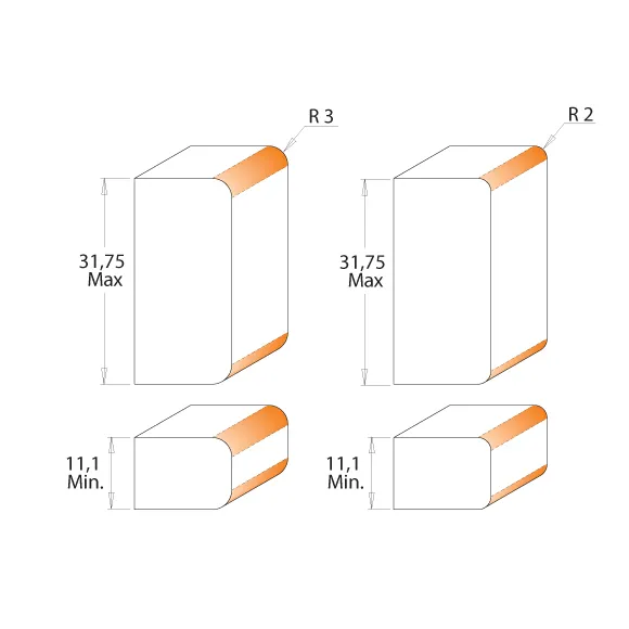 Má dvojitý rádius R2mm a R3mm, který změníte pouhým otočením frézovacích kotoučů.