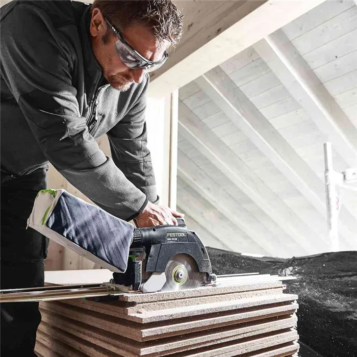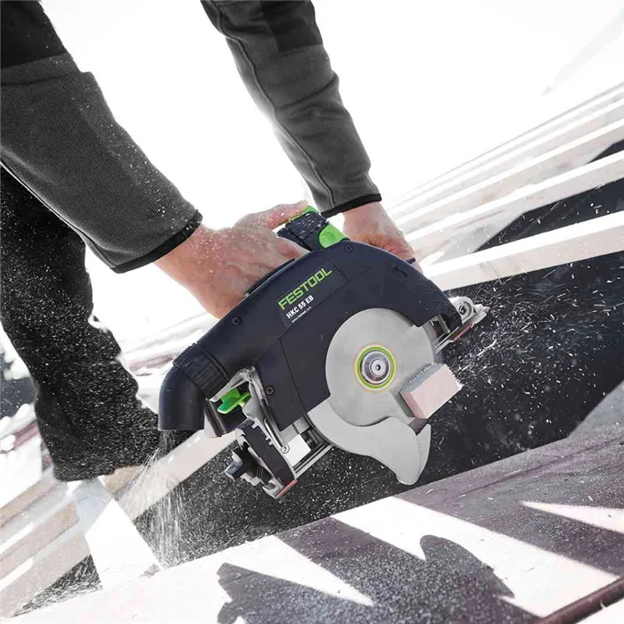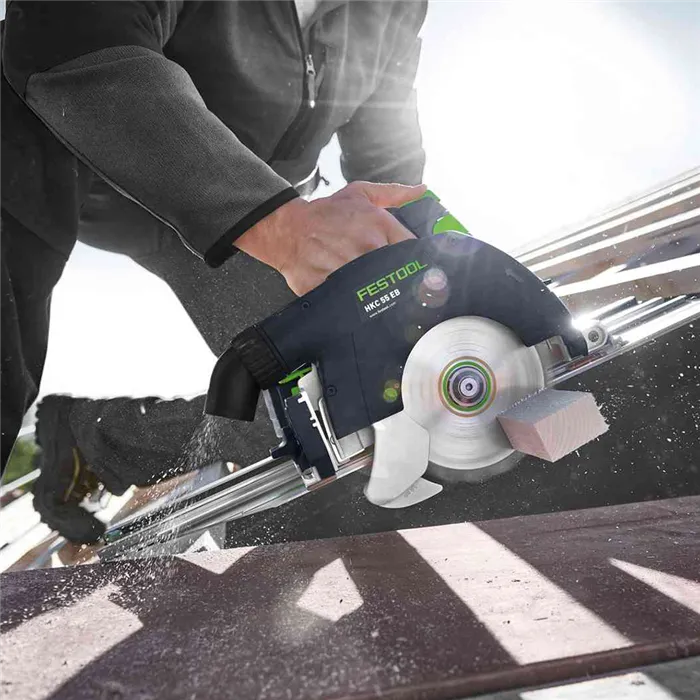 Ať na střeše, nebo na pevné podlaze, ať pro přesně opakované úhlové řezy a vedené řezy v kombinaci s kapovacími lištami FSK a vodicími lištami FS, nebo pro přesné pokosové řezy – akumulátorová okružní pila HKC 55 ukazuje, co dnes moderní ruční kotoučové pily dokáží. A dokazuje to na každém kroku. Díky univerzalitě, flexibilní použitelnosti a maximální přesnosti. Každý den znovu. A pohodlné použití s mobilním vysavačem Festool zaručují akumulátory Festool Bluetooth®: v kombinaci s mobilním vysavačem Festool s možností Bluetooth® zajišťují automatické spuštění vysavače v režimu AUTO při zapnutí akumulátorové okružní pily.