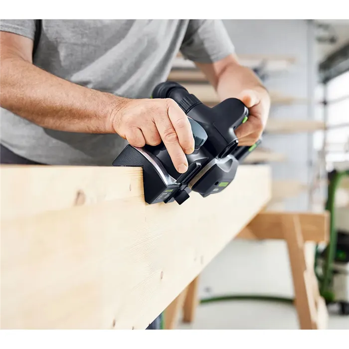 Akumulátorový hoblík HLC 82 je šikovným a spolehlivým pomocníkem na stavbě i v dílně. Umožňuje rychlé přizpůsobování, zkosení hran trámů a hranolů, vyrovnávání přechodů hran u stavebních desek, tvorbu polodrážek ve dveřích i úpravy podstavců nebo lícovacích lišt. Díky spirálovému noži dosahuje mimořádně jemné kvality povrchu, minimalizuje nutnost přebroušení a pracuje tišeji. S hloubkou drážky 25 mm, třemi integrovanými drážkami V a odnímatelnou deskou pro zkosení je hoblík připravený na širokou škálu použití. Výkonný bezuhlíkový motor EC-TEC zabezpečuje konstantní výkon i při maximálním úběru a rychlobrzda zvyšuje bezpečnost práce.