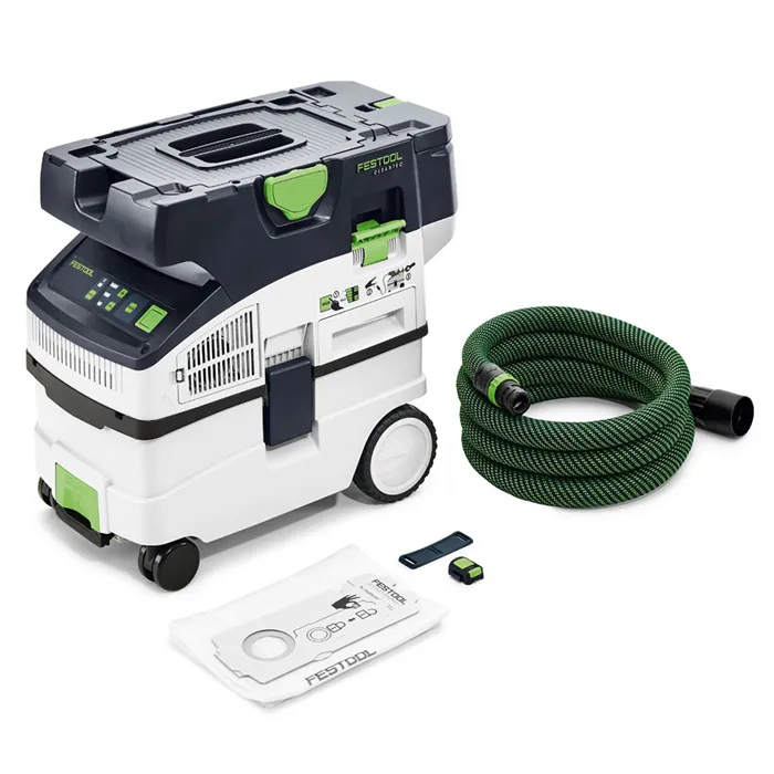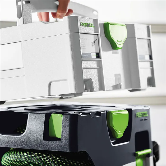 Kompaktní sací síla bez kabelu. Perfektní pro vaše akumulátorové nářadí.Sbohem, prachu. Vítej, zdraví – i bez síťové zásuvky. Akumulátorový kompaktní vysavač MIDI miluje prach a je perfektně přizpůsobený pro vaše akumulátorové nářadí Festool. Ať se jedná o řezání, broušení, nebo vrtání mimo dílnu: díky kompaktní konstrukci a malé hmotnosti představuje perfektního pomocníka pro každodenní použití. I s akumulátorovým systémem tak budete pracovat bezprašně! Perfektní souhru mezi akumulátorovým nářadím a vysavačem zabezpečuje inovativní automatické spuštění přes Bluetooth® nebo pomocí praktického dálkového ovládání. Náš akumulátorový vysavač se blýskne maximální sací sílou díky 36V motoru se 2 akumulátory 18 V. Pro zdravou práci s třídou prachu L. A jako obvykle k sobě všechno pasuje: vysavač, hladká sací hadice, akumulátorové nářadí, spojka Systaineru T-LOC. Celý systém je tak dokonalý.