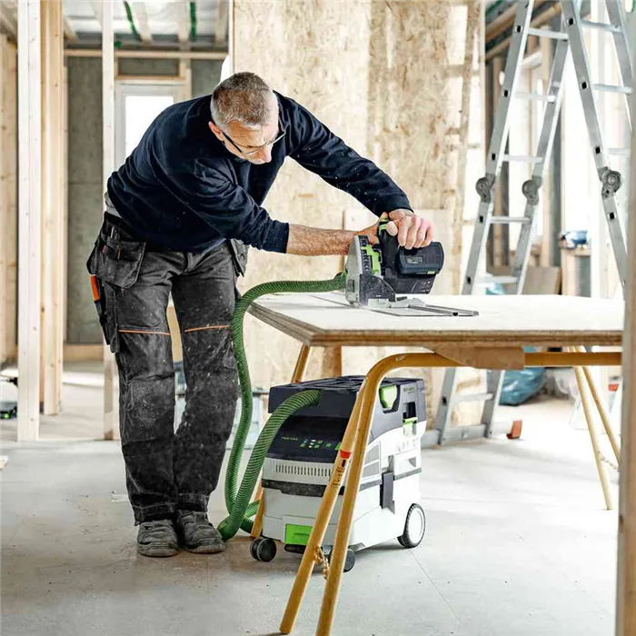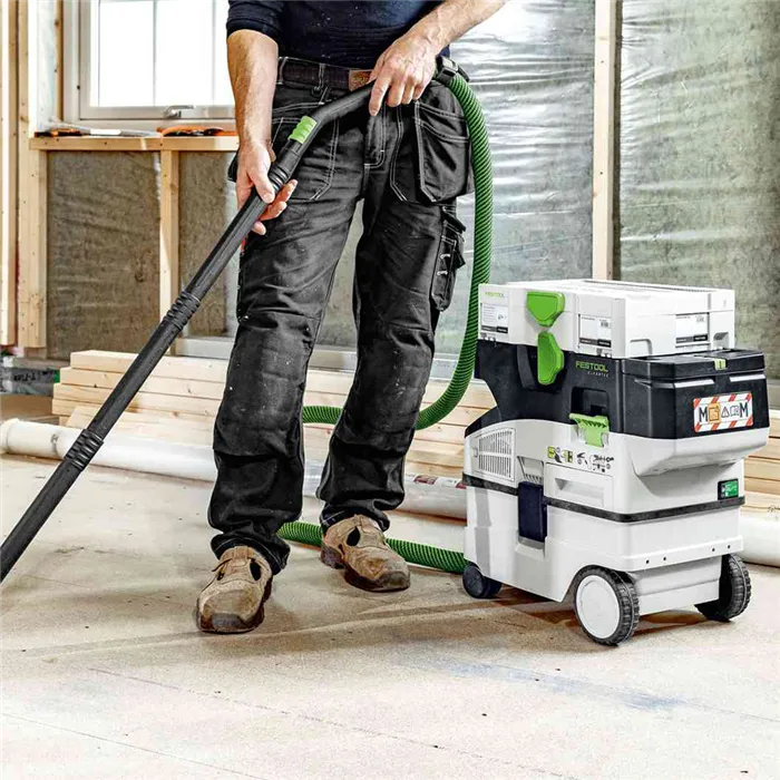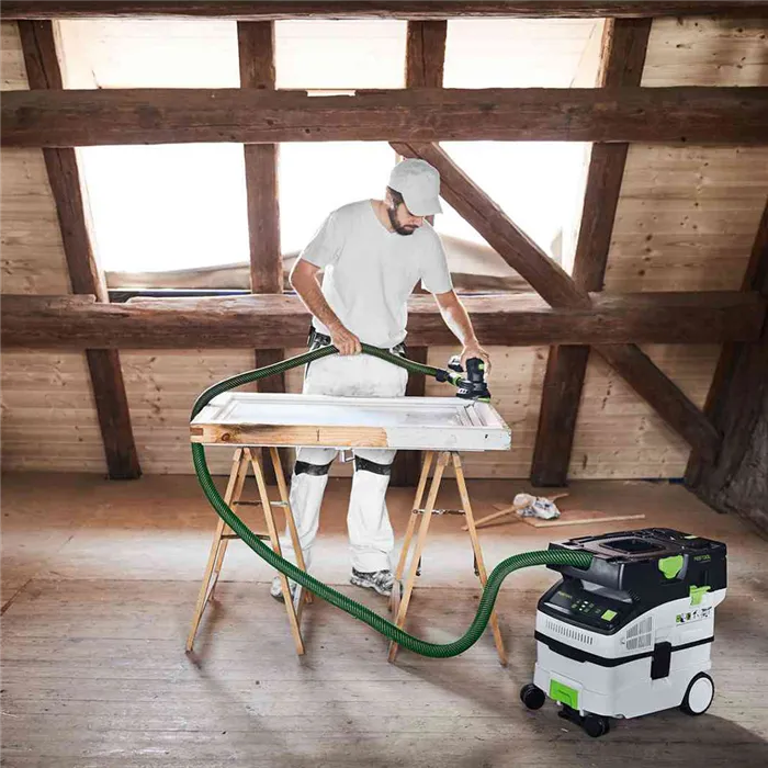Kompaktní sací síla bez kabelu. Perfektní pro vaše akumulátorové nářadí.Sbohem, prachu. Vítej, zdraví – i bez síťové zásuvky. Akumulátorový kompaktní vysavač MIDI miluje prach a je perfektně přizpůsobený pro vaše akumulátorové nářadí Festool. Ať se jedná o řezání, broušení, nebo vrtání mimo dílnu: díky kompaktní konstrukci a malé hmotnosti představuje perfektního pomocníka pro každodenní použití. I s akumulátorovým systémem tak budete pracovat bezprašně! Perfektní souhru mezi akumulátorovým nářadím a vysavačem zabezpečuje inovativní automatické spuštění přes Bluetooth® nebo pomocí praktického dálkového ovládání. Náš akumulátorový vysavač se blýskne maximální sací sílou díky 36V motoru se 2 akumulátory 18 V. Pro zdravou práci s třídou prachu L. A jako obvykle k sobě všechno pasuje: vysavač, hladká sací hadice, akumulátorové nářadí, spojka Systaineru T-LOC. Celý systém je tak dokonalý.