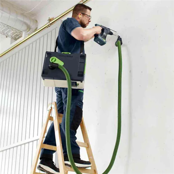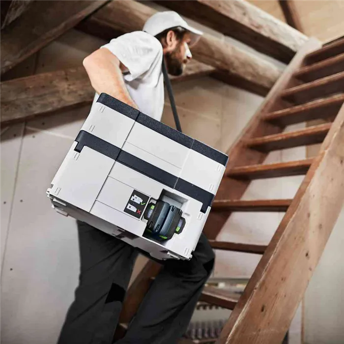 Pro zavěšení přes rameno: akumulátorový vysavač ve formátu Systaineru.Vždy při ruce, bez kabelu. Zvenku Systainer, uvnitř akumulátorový vysavač. Náš vysavač ve formátu Systaineru vám poskytuje maximální mobilitu a nezávislost při minimální hmotnosti – perfektní pro přepravu a zavěšení přes rameno. Představuje tak vhodného pomocníka při servisních a drobných pracích a při spontánním průběžném použití. U třídy prachu L umožňuje bezprašnou práci bez zásuvky. Přitom se blýskne maximální sací sílou díky 36V motoru se 2 akumulátory 18 V. A jako obvykle k sobě všechno pasuje: vysavač, hladká sací hadice, akumulátorové nářadí, spojka Systaineru T-LOC. Perfektní souhru mezi akumulátorovým nářadím a vysavačem zabezpečuje inovativní automatické spuštění přes Bluetooth® nebo pomocí praktického dálkového ovládání. Celý systém je tak dokonalý.