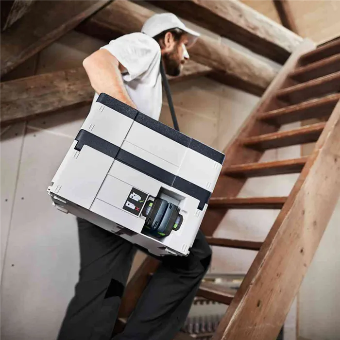 Pro zavěšení přes rameno: akumulátorový vysavač ve formátu Systaineru.Vždy při ruce, bez kabelu. Zvenku Systainer, uvnitř akumulátorový vysavač. Náš vysavač ve formátu Systaineru vám poskytuje maximální mobilitu a nezávislost při minimální hmotnosti – perfektní pro přepravu a zavěšení přes rameno. Představuje tak vhodného pomocníka při servisních a drobných pracích a při spontánním průběžném použití. U třídy prachu M umožňuje bezprašnou práci bez síťové zásuvky. Přitom se blýskne maximální sací sílou díky 36V motoru se 2 akumulátory 18 V. A jako obvykle k sobě všechno pasuje: vysavač, hladká sací hadice, akumulátorové nářadí, spojka Systaineru T-LOC. Perfektní souhru mezi akumulátorovým nářadím a vysavačem zabezpečuje inovativní automatické spuštění přes Bluetooth® nebo pomocí praktického dálkového ovládání. Celý systém je tak dokonalý.