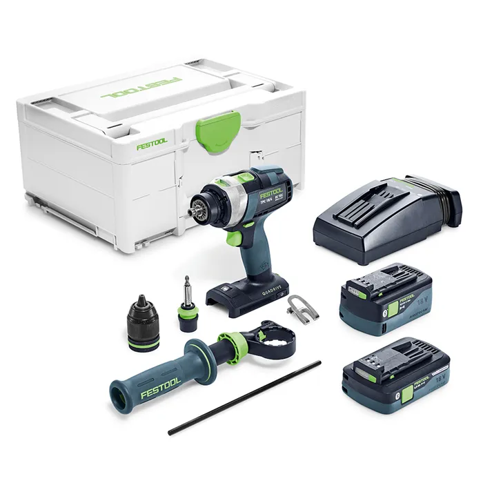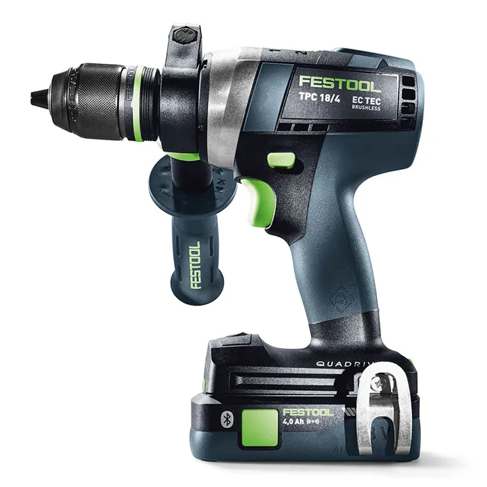 Dokonalá síla, dávkovaná ve 4 stupních.Výkonný. Mnohostranný. Se 4 stupni pro každé použití. S nejlepší koncepcí spínače, který jste kdy ovládali. Nezáleží na tom, zda jde o dřevo, kov, nebo díky zapínatelnému axiálnímu příklepu i zdivo: TPC splňuje ty nejnáročnější požadavky a díky bezuhlíkovému motoru EC-TEC se vyznačuje mimořádnou zatížitelností a výdrží. Díky četným nástavcům a kombinaci s perfektně sladěným příslušenstvím představuje QUADRIVE nedostižný příklepový vrtací šroubovák pro nejrůznější možnosti použití. A nebezpečné zkroucení zápěstí při náhlém zablokování nástroje? Naše inteligentní funkce KickbackStop minimalizuje riziko, že to zajde tak daleko. Vyzkoušej ho: Nejlepší příklepový vrtací šroubovák, který firma Festool kdy vyrobila!