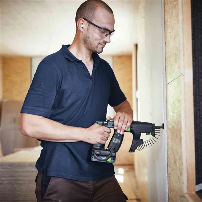 Sériové zapouštění šroubů: specialista na suché stavby.Každý detail zaměřený na suché stavby: krátká konstrukce a vyvážené těžiště zabezpečují optimální rozložení hmotnosti – i nad hlavou. Díky zásobníku na páskované šrouby představuje první volbu pro rychlé a přesné šroubování jednou rukou – s přesnou hloubkou a enormním počtem taktů. Díky inovativní funkci Stop-and-Go pracuje bezuhlíkový motor EC-TEC jen tehdy, když je třeba, a umožňuje až o 40 % vyšší šroubovací výkon na jedno nabití akumulátoru.