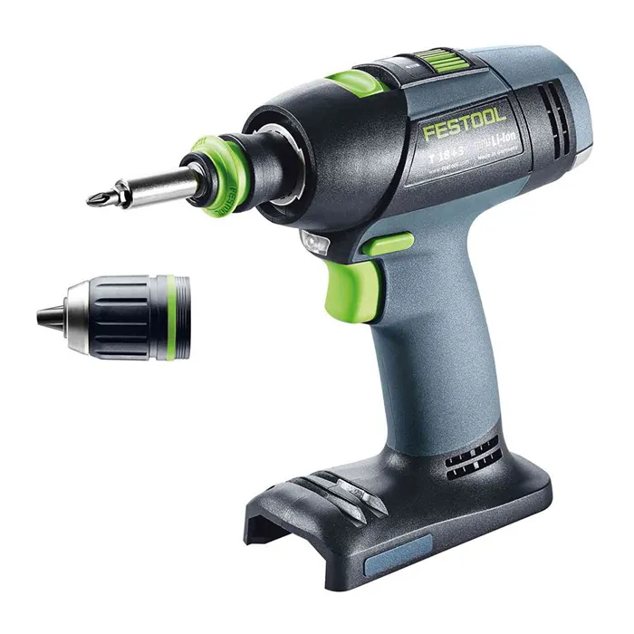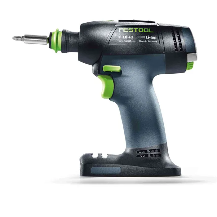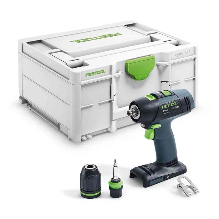 Pro rychlé střídání vrtání a šroubování.Pro naprostou flexibilitu při vrtání a šroubování: plně elektronické nastavení krouticího momentu, rychlovýměnný systém CENTROTEC, úhlový a excentrický nástavec a hloubkový doraz zvládnou každé vrtání a šroubování. Díky kombinaci akumulátoru Li-HighPower a bezuhlíkového a tedy bezúdržbového motoru EC-TEC je akumulátorový vrtací šroubovák T 18+3 lehký a vyznačuje se dlouhou životností a výdrží. Pro bezstarostnou každodenní práci je akumulátorový šroubovák a akumulátor kompletně zabezpečený službami Festool SERVICE. Je dostupný s jedinečnou konstrukcí T nebo – podle individuální preference – také jako C 18 s jedinečnou konstrukcí C.