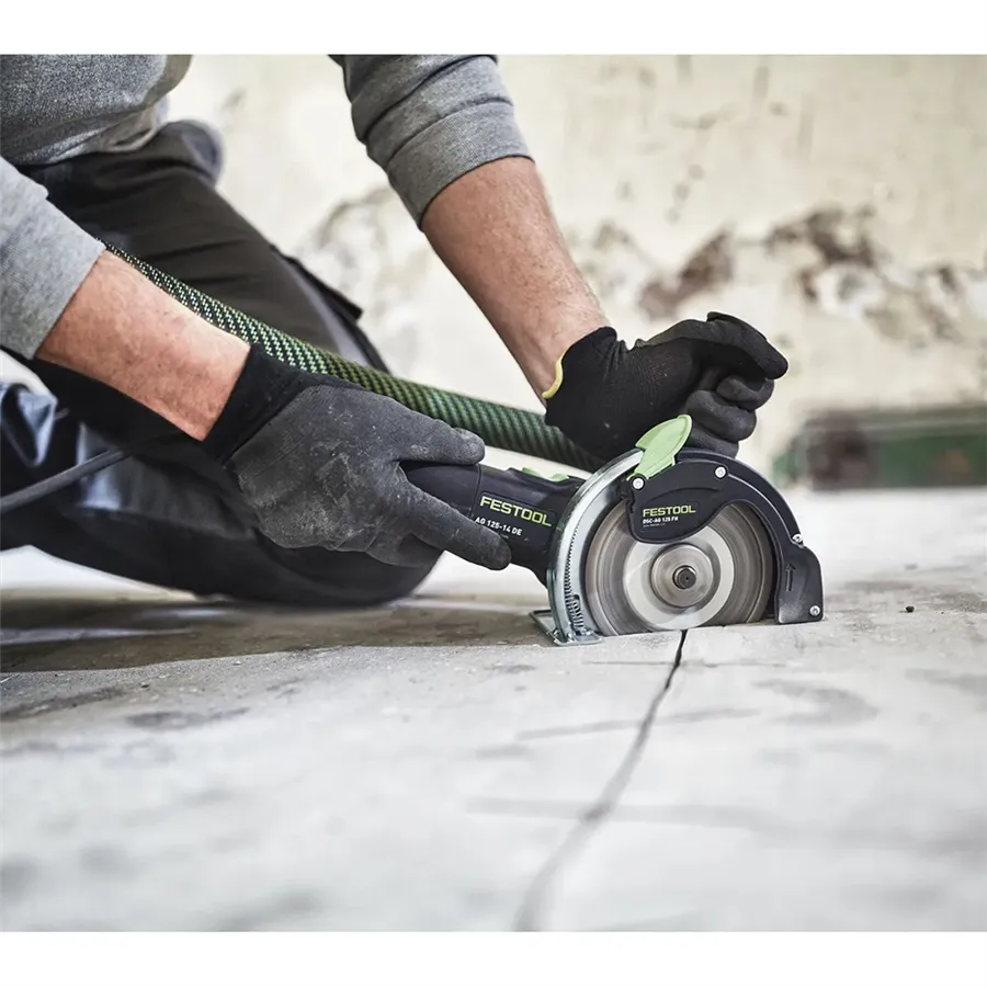 Festool DSC-AG 125 FH je zdařilá kombinace úhlové brusky a účinného odsávání prachu. Speciálně konstruovaný kryt odsávání zachytává prach přímo v místě řezu a zajišťuje čistotu bez kompromisů. Otevřená konstrukce poskytuje volný výhled na místo řezu, ať už při posuvu nebo při práci blízko okraje. Díky hmotnosti pod 3 kg je práce pohodlná a citelně lehčí.