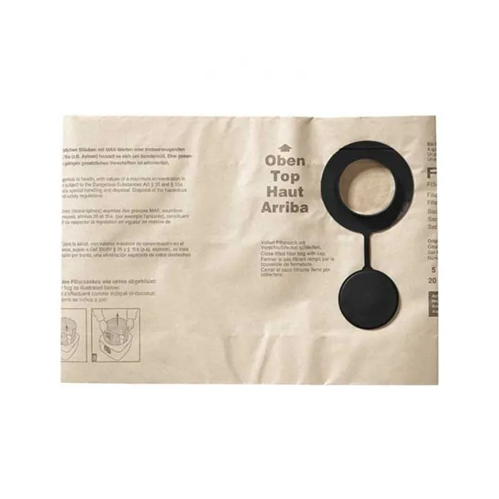 Čistá práce šetrná ke zdraví.Papírový filtr s plastovým uzávěrem pro vysávání prachu. Vynikající pro efektivní, čistou a zdravotně nezávadnou práci se systémem.