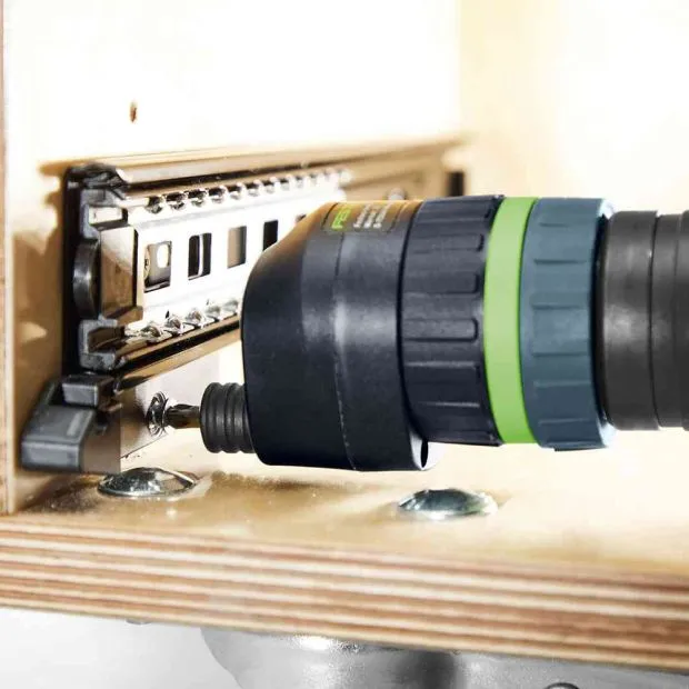Vrtání a šroubování blízko kraje.Excentrický nástavec s rychlým nastavením úhlu umožňuje vrtání a šroubování blízko okraje. Excentrický nástavec lze používat pro vrtací šroubováky s upínáním FastFix a bajonetovým uzávěrem. Aretovací 1/4" upínání bitů zabraňuje neúmyslnému vypadnutí bitu nebo příslušenství CENTROTEC, jako například vrtáků a bitů.