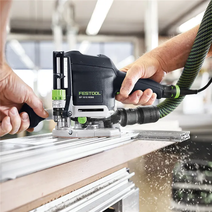 Dokonalý výhled pro přesné výsledky frézování.Extrémně mnohostranná. Extrémně přesná. Extrémně snadná manipulace: Ať ručně vedená, nebo na vodicí liště, horní frézka OF 1010 R je ideální nářadí pro jemné frézování. Díky rozměrům a nízké hmotnosti ji lze přesně vést na hranách, při rovném frézování nebo v zakřivených tvarech. Frézování profilů, drážek, polodrážek a čepů – OF 1010 R přesvědčí velkým množstvím možností použití.