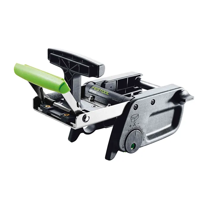 • Oboustranná stolní opěrka kapovačky umožňuje rovnoměrné kapování levých i pravých hran desek shora - s perfektní viditelností obrobku
