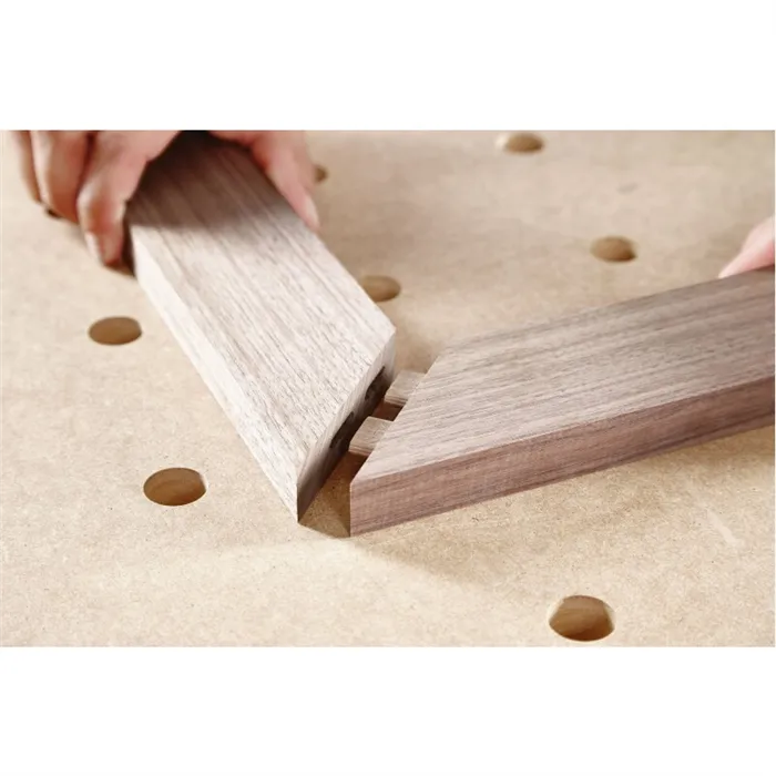 Mimořádný tvar v kombinaci s bobtnajícími kapsičkami s lepidlem a podélnými drážkami zajišťuje spolehlivou pevnost kolíků. Pro spoje absolutně odolné proti zkroucení a maximální stabilitu. A zpracování je výrazně rychlejší: první kolíkový otvor s velmi jednoduše vyrovná pomocí dorazových čepů a přesně vyfrézuje. Spojované obrobky jsou tak okamžitě upevněné přesně a s lícující hranou. Systém DOMINO toleruje i menší nepřesnosti u dalších otvorů pro kolíky.
