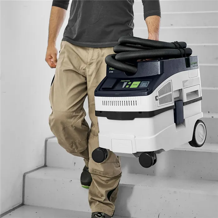 Mobilní vysavač CT 15 s objemem 15 l je ideální pro úklid na stavbách, v dílnách i kancelářích. Vysává prach, nečistoty i vodu a díky konstrukci využívá téměř celý objem nádoby – pro delší práci bez přerušení. Kompaktní, lehký a robustní, s intuitivním dotykovým ovládáním a příslušenstvím uloženým přímo na vysavači.