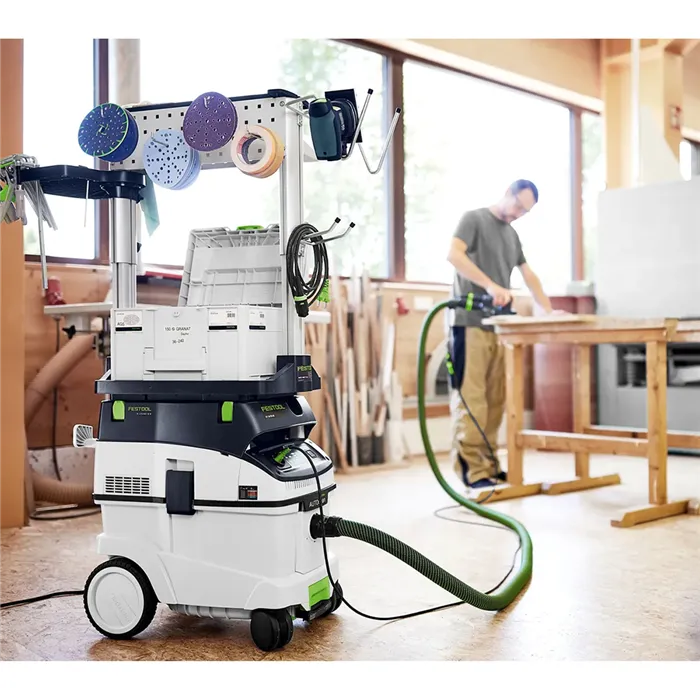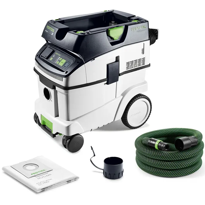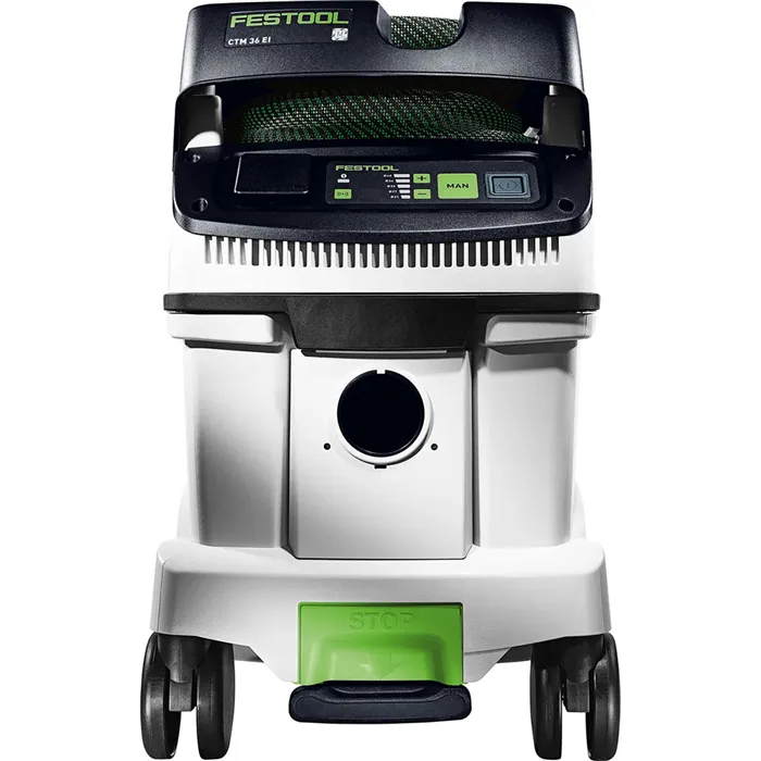 Festool CLEANTEC CTM 36 E AC nabízí velkou kapacitu 36 l při kompaktních rozměrech. Díky dotykovému ovládání je obsluha jednoduchá a intuitivní. Bluetooth® rozhraní umožňuje automatické spuštění s akumulátorovým nářadím nebo volitelným dálkovým ovládáním a propojení s aplikací Festool. Hladká antistatická sací hadice je uložená v integrovaném rámu. Pomocí T-LOC můžete rychle spojit Systainer, odlučovač či pracovní centrum – vysavač se tak stává ústředním bodem systému.