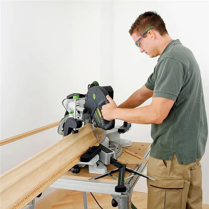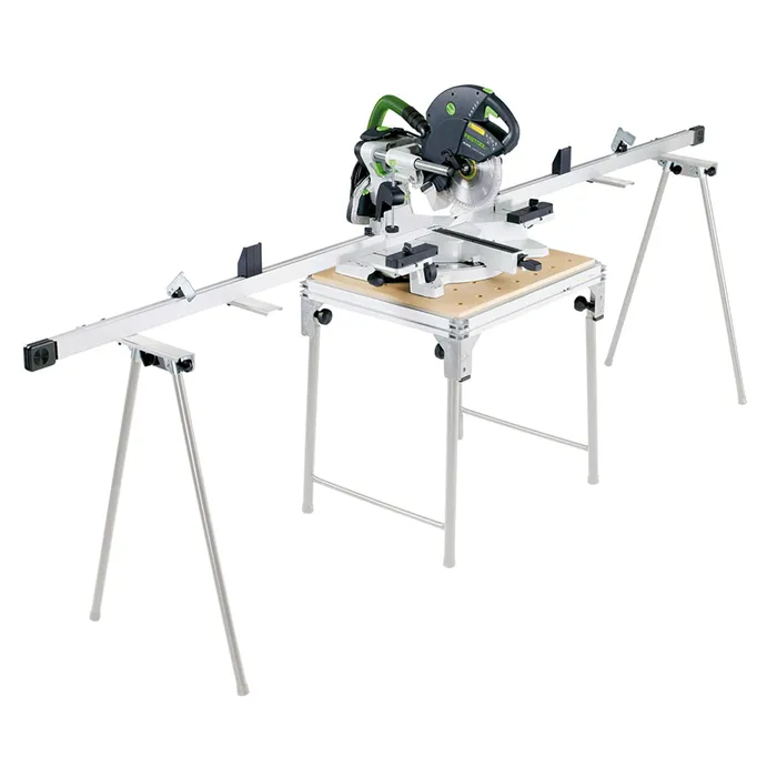 Mobilní řezací stanice.MFT KAPEX je speciální pracovní stůl, pomocí kterého lze z KS 88 a KS 120 vytvořit mobilní řezací stanici. Stůl přitom má optimální výšku pro dosažení úrovně kapovacích dorazů KA-KS 12-R/L.