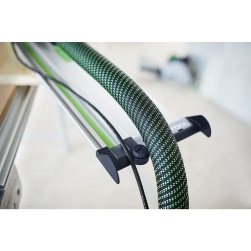 Vede bez oklik.Usměrňovač vede kabel a sací hadici na konci vodicí lišty při řezání s ponornou pilou nebo okružní pilou bez zaháknutí.