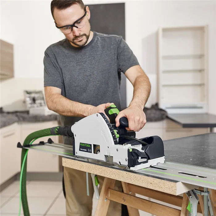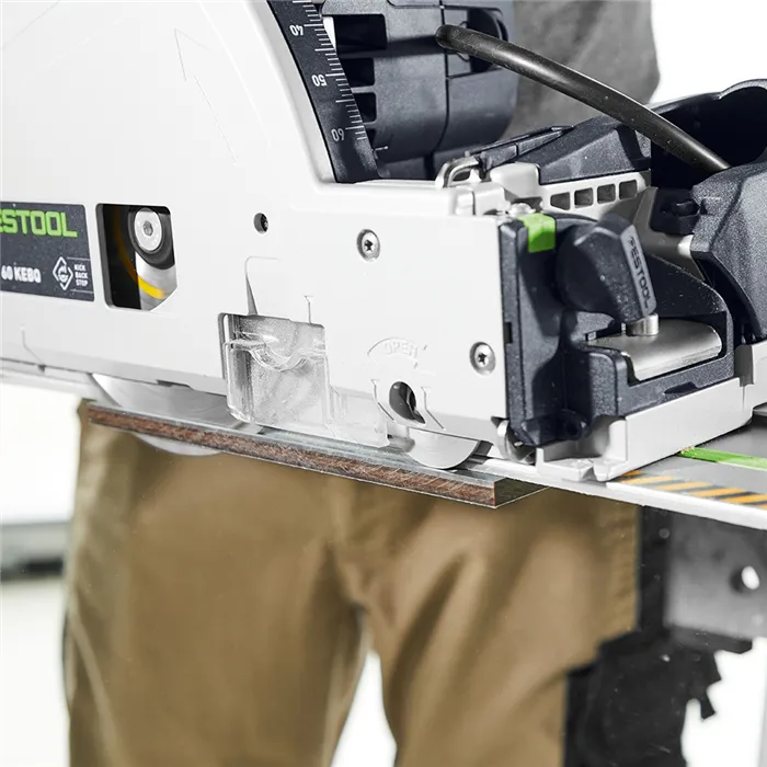 Řezání bez otřepů jako nikdy předtím. Dokonalé již při prvním řezu. Ponorná pila s předřezem TSV 60 K.Od roku 1980 se můžete spolehnout na kvalitu a absolutní přesnost ponorných pil Festool. Naše náročnost: dokonalý výsledek řezání. Díky ponorné pile s předřezem TSV 60 K jsme zdokonalili přesně tyto požadavky. Oboustranné řezání bez otřepů se nyní podaří již při prvním řezu. Ve spojení s funkcí KickbackStop chráníte sebe a svůj obrobek před nebezpečnými zpětnými rázy a díky správnému systémovému příslušenství Festool pracujete vždy mobilně, přesně a na míru. TSV 60 K umožňuje dílenskou kvalitu na stavbě – stejně jako u stacionárního stroje.