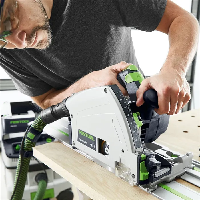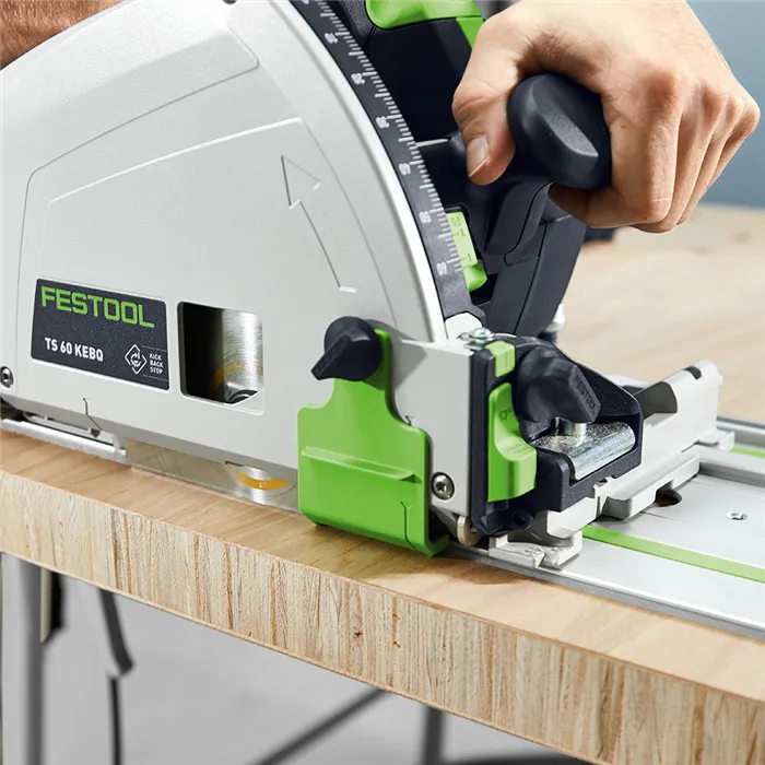 Rozvoj ve světě řezání. Nové měřítko v oblasti řezání.Ponorné pily Festool nastavují již po mnoho desetiletí nejvyšší laťku v oblasti řezání. TS 60 K znamená opět novou definici této úrovně. Jedinečná funkce KickbackStop rychleji než mrknutím oka ochrání váš obrobek a minimalizuje riziko zranění. Je dokonale připravena k použití s celým pilovým systémem Festool a s hloubkou řezu 60 mm se u této nejvšestrannější pily svého druhu můžete spolehnout na prvotřídní výsledky své práce. Přirozeně také při pokosových řezech a u masivních desek. Bezkonkurenční je možnost kombinovat pilu TS 60 K nyní také s kapovací lištou. Stačí pár pohybů a vznikne jednoduše použitelný kapovací systém pro precizní a úhlově přesné řezy. S bezuhlíkovým motorem EC-TEC poslední generace je tato kompaktní ponorná pila extrémně robustní a výkonná. Řeže materiál jako máslo a slučuje v sobě přesnost, flexibilitu a nejvyšší kvalitu řezu – současně při vyšší bezpečnosti. TS 60 K: Rozvoj ve světě řezání.