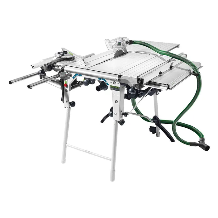 Snadná práce s pilou.Posuvný vozík umožňuje s příslušným úhlovým dorazem pily CS 70 dosáhnout u obrobků přesně pravoúhlých řezů. Lze ale nastavit i další libovolné úhly. Stačí jednoduše protáhnout materiál pilovým kotoučem a hotovo! Posuvný stůl slouží zároveň jako další rozšíření na levé straně stolní pily CS 70.