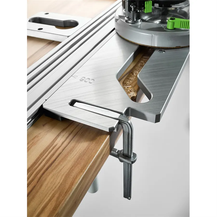 S šablonou na spoje pracovních desek APS lze jednoduše vytvářet zarovnané spoje dřevěných desek s úhlem 90°. Šablona se upevní pomocí integrované možnosti upnutí a umožňuje tak přesné výsledky – také při více frézovacích krocích v jedné drážce.