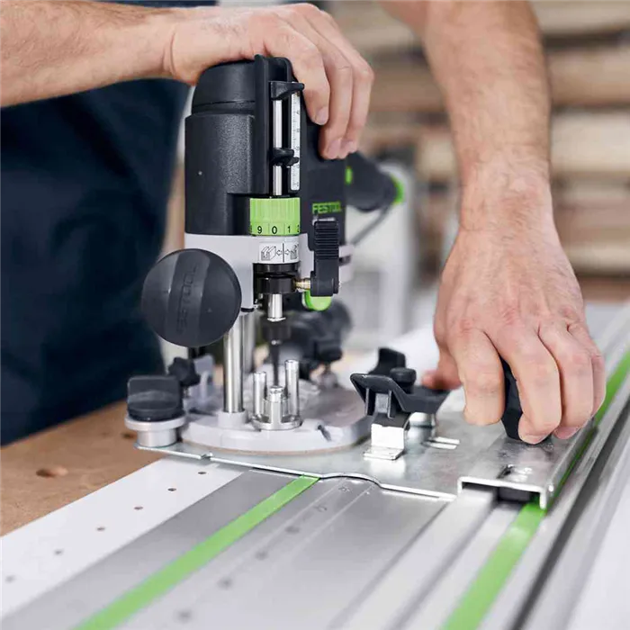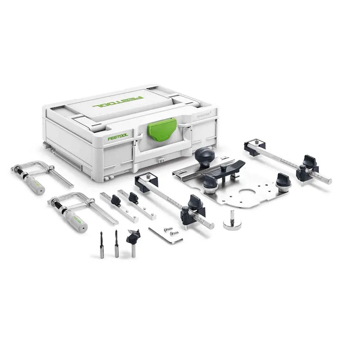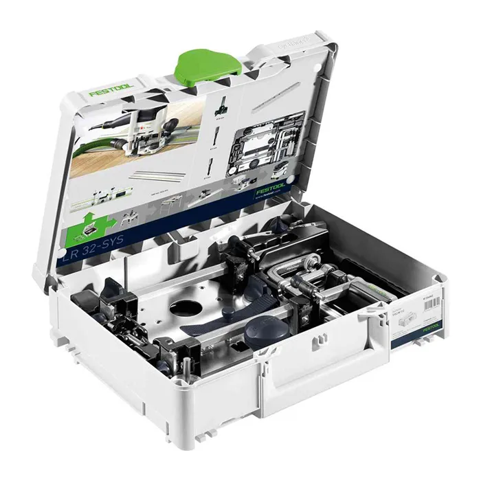 Otvory v sérii.Řady otvorů se vrtají vždy s roztečí 32 mm a průměrem otvorů 5 mm nebo 3 mm. Systém pro vrtání řad otvorů je kompletní sada pro rychlé a jednoduché vytváření řad otvorů pro nosné kolíky, upevňovací prvky na zadní stěnu a kování pomocí OF 1010 nebo OF 1400. Vše v Systaineru.