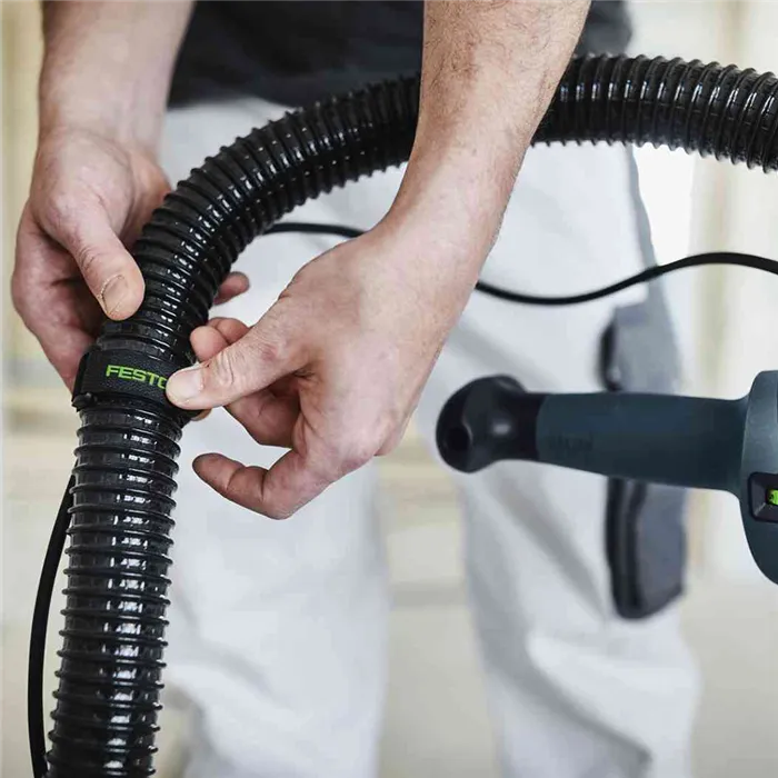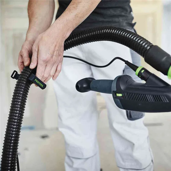 Díky sponě na hadici SC-LHS 2 225 máte při broušení stropů volný prostor pro uchopení, aniž by hadice překážela u hřbetu ruky. Pevně drží hadici a kabel v dostatečné vzdálenosti od hřbetu ruky.