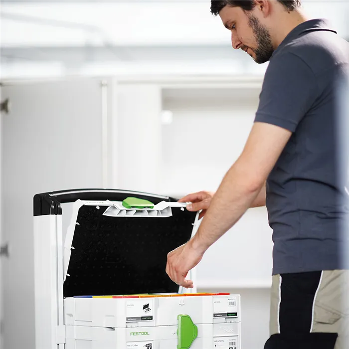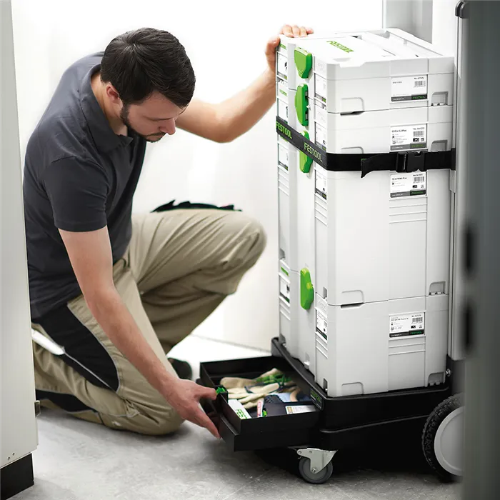 Vozík na Systainery, který zvládne i schody.SYS-Roll s funkcí pojízdné plošiny zabezpečuje mobilitu. Z dílny do auta, z auta k zákazníkovi, na stavbě nebo v dílně. Systainery stojí na SYS-Roll pevně a lze je bezpečně přepravovat – navíc jsou chráněné bezpečnostním popruhem. Funkce rudlu díky mimořádně velkým zadním kolečkům umožňuje snadné přemisťování po schodech nahoru a dolů. Ušetříte tak spoustu času, ještě více síly a zároveň je vše nejlépe zorganizované.