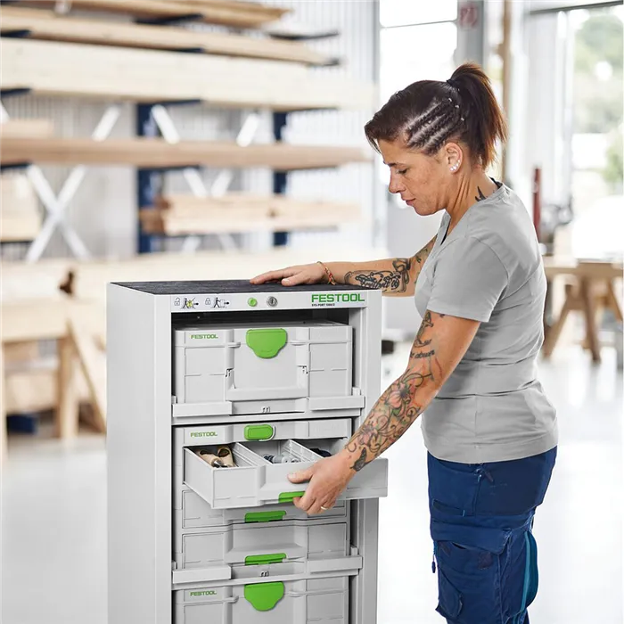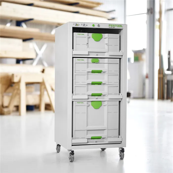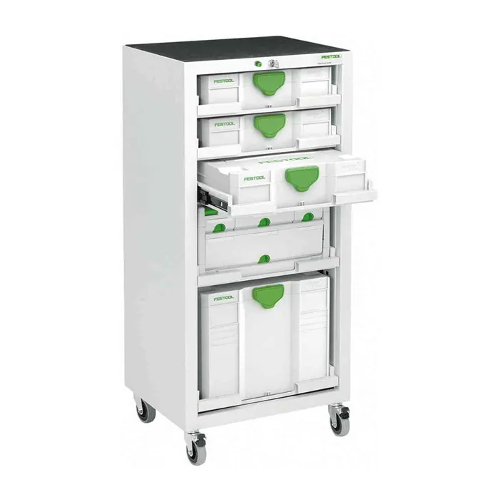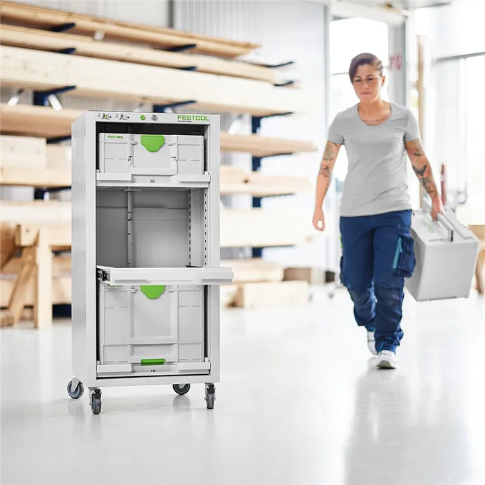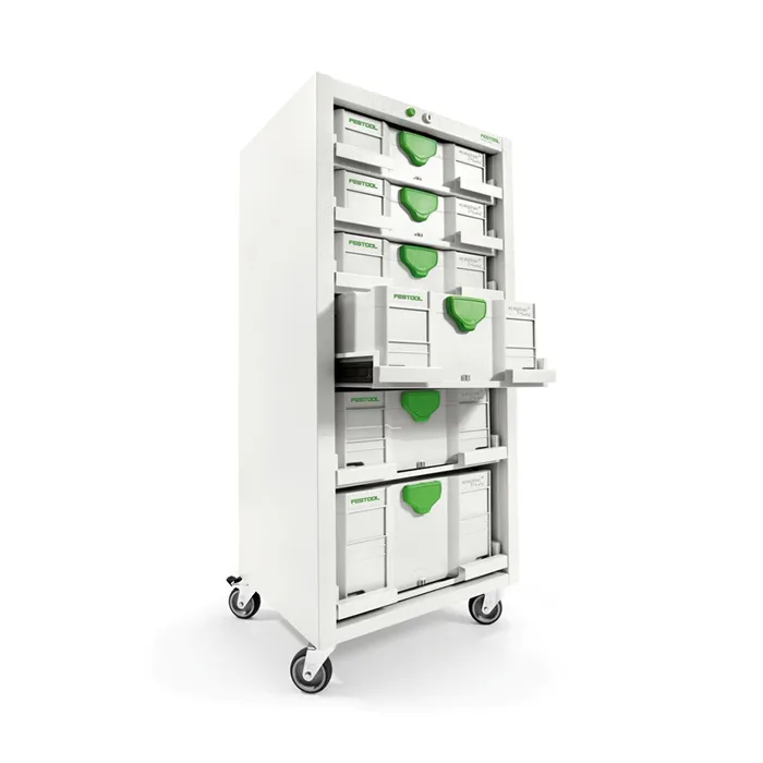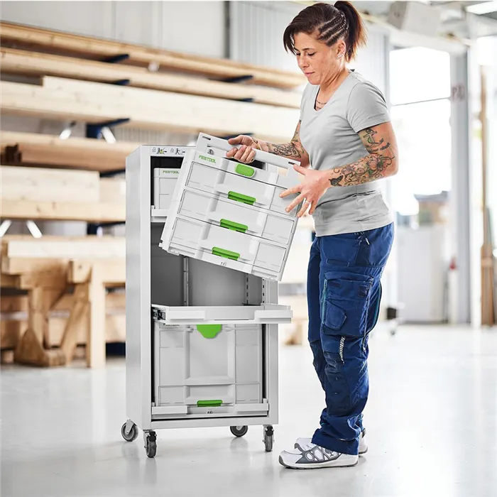 Pořádek na kolečkách.Pořádek na kolečkách. Mobilní úložný systém pro Systainery a Sortainery přispívá k hospodárné práci. Systainer-Port zabezpečuje pořádek a mobilitu v dílně: veškeré nářadí a pracovní prostředky potřebné pro příslušný pracovní úkol si tak lze jednoduše převézt na pracoviště. U jednotlivých výsuvů lze přitom individuálně nastavit výšku – pro flexibilní osazení Systainery a Sortainery různých velikostí.