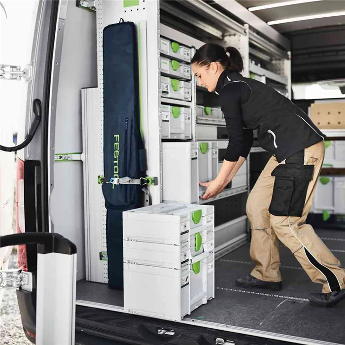 Ideální pro truhláře: dřevěná vložka zabezpečuje pořádek, přehled a jednoduchou přepravu nejběžnějšího ručního nářadí. Osvědčený ovládací prvek T-LOC umožňuje zavírání, otevírání a spojování jedním otočením. Díky perfektní integraci do vestavby do vozidel bott vario3 budete mít i ve vozidle zabezpečený pořádek, na který jste zvyklí u Systainerů, a jednoduchou manipulaci.